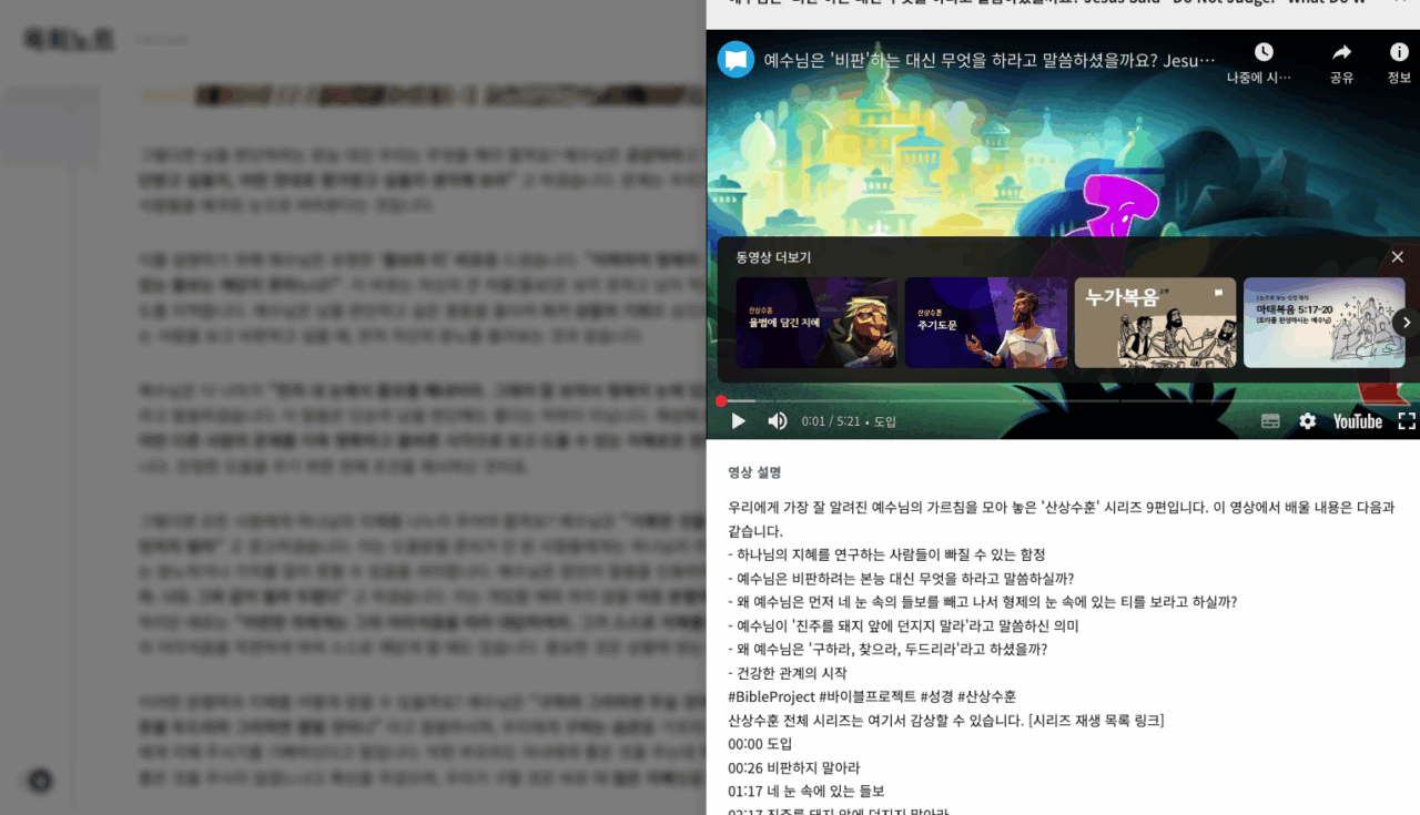 글 편집 화면에서 YouTube 영상 주소만 붙여넣으면 즉시 작동하므로, 누구나 쉽게 사용할 수 있습니다. - 세련된 디자인