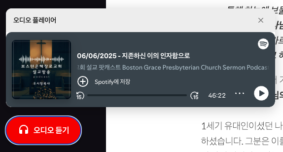 - 오디오(팟캐스트, 음악)의 경우: 화면을 많이 가리지 않는 작은 ‘하단 고정 플레이어’가 나타납니다. 이 플레이어는 사용자가 마우스로 끌어 원하는 위치로 이동시킬 수도 있어 편리합니다.